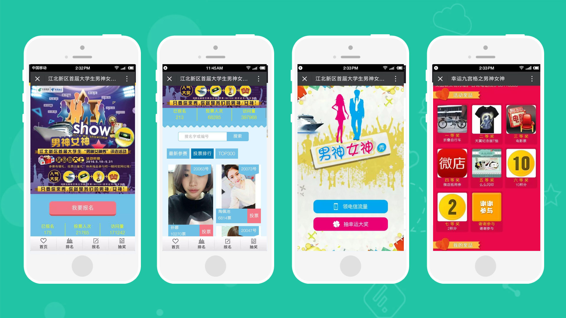 通过参与微信线上活动【男神女神show】投票活动,在江北高校评选男神女神,评选出的男神女神进行线下PK。