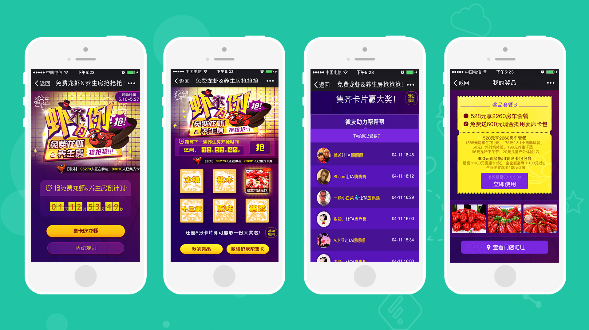 可获得一张龙虾图片,剩余5张龙虾图片需要好友助力翻开,集齐6张不同的卡片,即可兑换大奖。每天两个时段参与抽奖,每个用户每个时段只能参与一次。