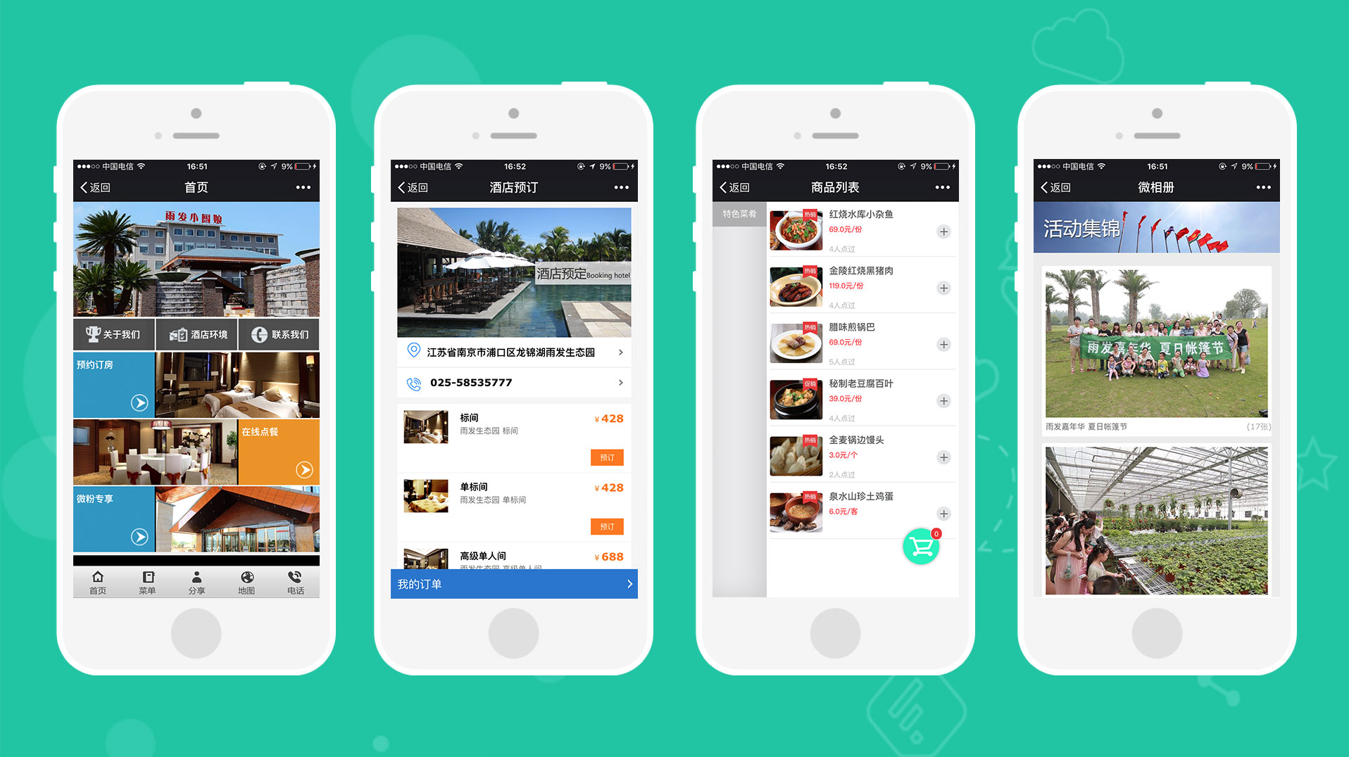 2、 微信在线点单、预定、购买功能;